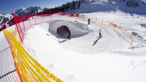 Kolejnym rejonem, który postawił na rodziny z dziećmi jest Karyntia a dokładniej ośrodek Nassfeld, który należy do 10 najlepszych stacji narciarskich w Austrii. Oprócz mnóstwa atrakcji na stokach w postaci specjalnych szkółek, przedszkoli dla najmłodszych oferuje coś specjalnego dla nieco starszych dzieci – mowa tu o funslope. Ta nietypowa trasa to połączenie zwykłego stoku, funparku i crossu, w skrócie 11 fal, 9 ostrych zakrętów i 2 uskoki – raj dla młodzieży. Dodatkowo w każdą niedzielę Shred School organizuje bezpłatne zajęcia freestylowe  dla każdego.